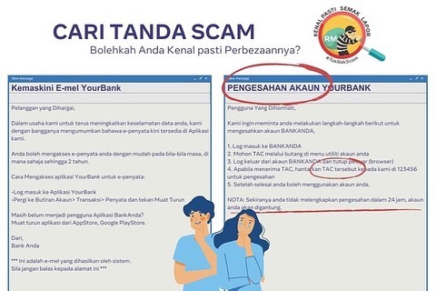 Sentiasa berwaspada dan semak dengan institusi perbankan anda sekiranya menerima mesej atau e-mel yang mencurigakan.